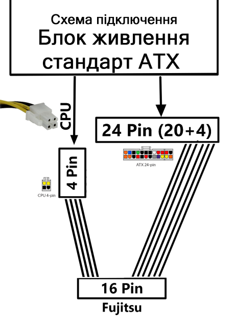 до плат Fujitsu з роз'ємом живлення 16pin.